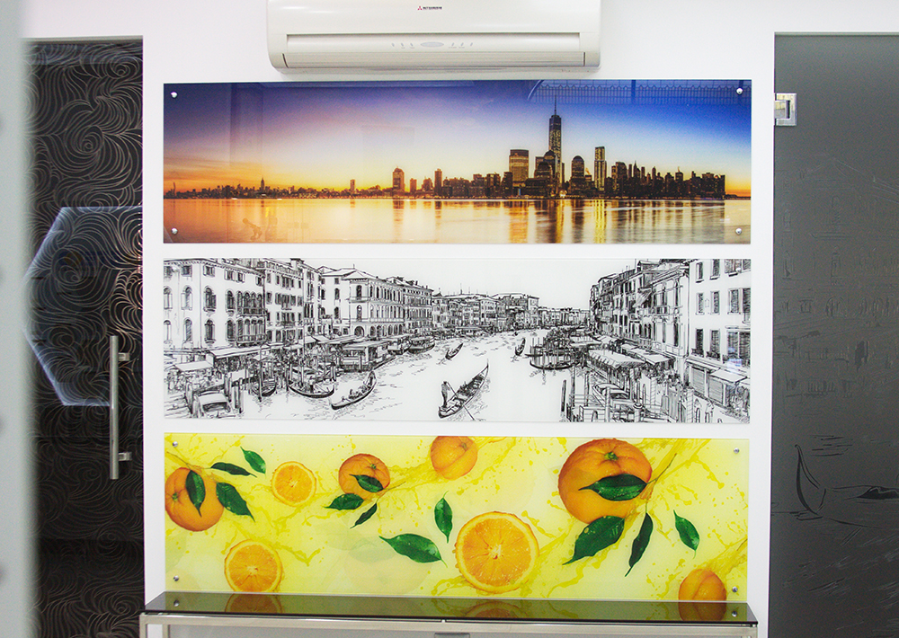 Ապակու վրա տպագրությունը, դա միջոց է ցանկացած նկարի ներմուծումը ինտերյեր, լինի դա էսքիզ, գունավոր նկար, մոնոխրոմ օրնամենտ կամ գրաֆիկական աբստրակցիա: Ապակու վրա տպագրության միջոցով էականորեն մեծանում են դեկորացման հնարավորությունները: Տպագրության միջոցով կարելի է գեղեցկացնել ոչ միայն պատեր, այլ նաև միջսենյակային դռներ, կահույքի ֆասադներ, խոհանոցային գոտիներ, պահարաններ, խոհանոցային սեղաններ, տարատեսակ միջնապատեր և շարժական կոնստրուկցիաներ: